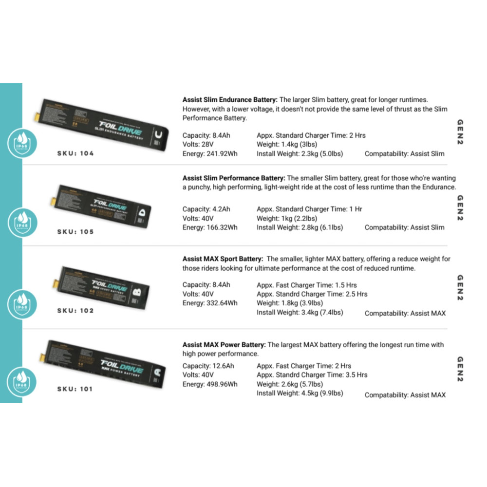Link to: Foil Drive MAX Power Battery Link to: Foil Drive MAX Power Battery Foil Drive MAX Power BatteryFoil Drive MAX Power battery product shot from top Link to: Foil Drive Assist MAX Foil Kit – MAX Power Battery -V2 Motor Link to: Foil Drive Assist MAX Foil Kit – MAX Power Battery -V2 Motor Foil Drive Assist MAX power spreadFoil Drive Assist MAX Foil Kit – MAX Power Battery -V2 Motor